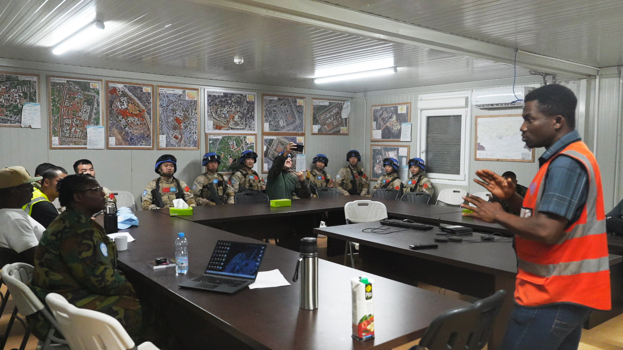 夜间飞行前,联阿安全部队航空处安全形势分析现场。黄浩摄
