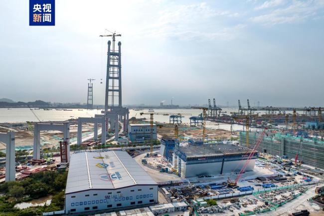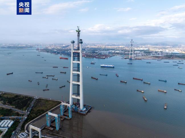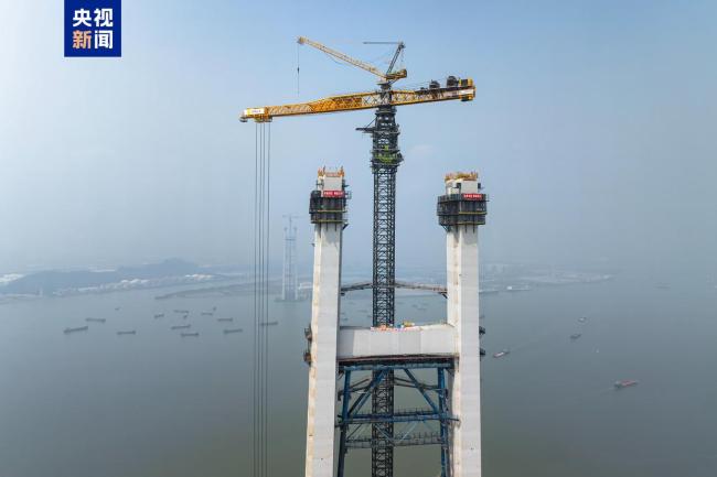 狮子洋大桥主塔封顶 双层悬索桥创五项世界第一